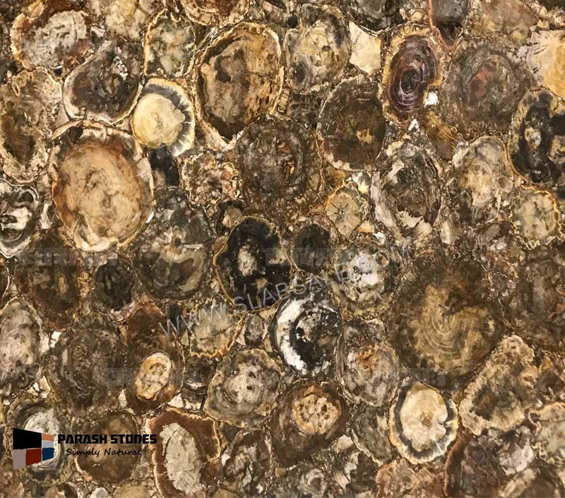Exclusive fossil stone, Australian petrified wood custom cut to size tiles and slabs. Made by using petrified wood stone round slices imported from Australia. Give your interior a vintage royal look, million years old wood turned into stone, fossil stone for high end luxury interior and decor.