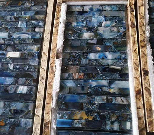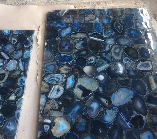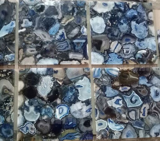 Beautiful blue agate geode semi precious gemstone tiles and slabs available in custom sizes as per your need.