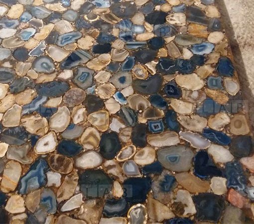 Beautiful combination of blue agate, brown agate and yellow agate to product exclusive slab and tiles, available