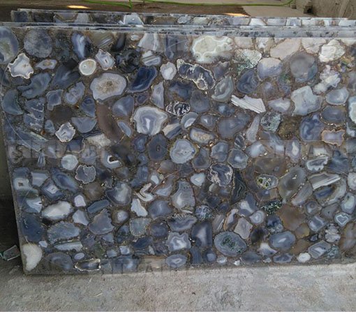 Natural grey agate geode precious stone tiles and slabs with crystalline looks in crust. Beautifully crafted tiles and slabs in custom sizes as required.