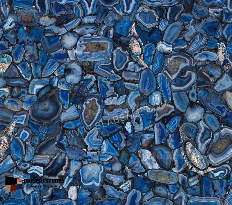 Beautiful semi precious gemstone slab manufactured in dense blue color agate, large size of agate pieces gives attractive look to this precious slab.