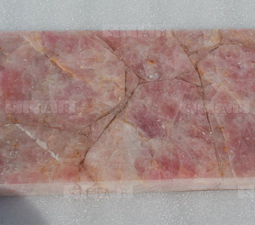 Pink gemstone rose quartz tiles and slabs in custom sizes, pink rose quartz crystal surface with premium finishing rich look. Translucent slabs and tiles can be under lit or back lit for any application.