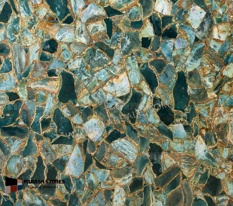 Russian serpentine green custom cut to size tiles and slabs, accent with golden sparkle to give royal luxury look to surfaces. Widely used in high end interior decor these days. Green details fo russian serpentine gives eye catching natural look to any environment.