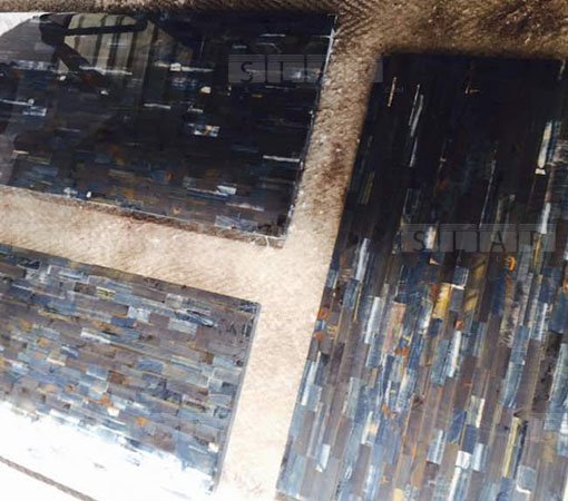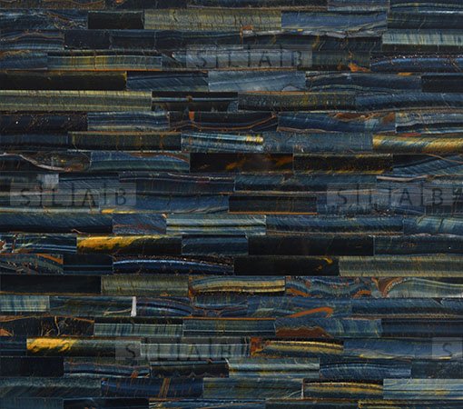 Tiger eye blue precious stone surface in brick design, premium surface for any interior decor project. Custom sizes tiles and slabs for perfect interior or exterior luxury construction.